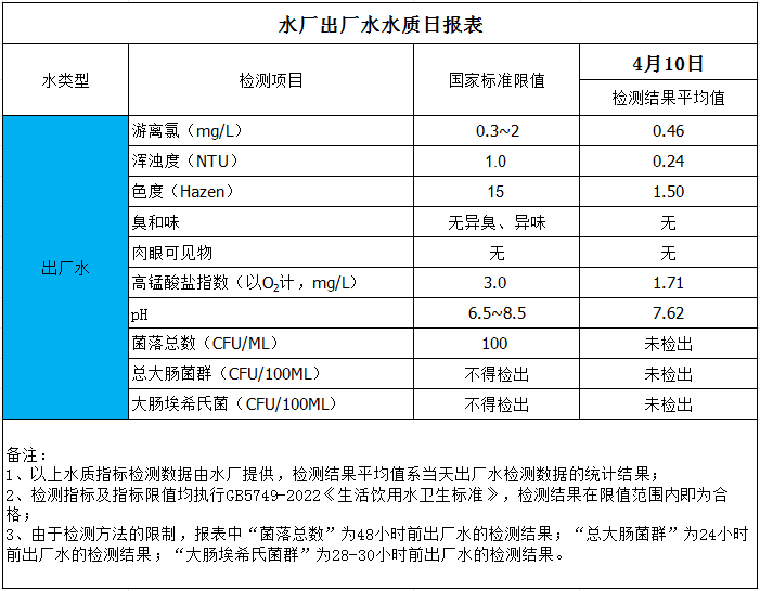 水廠出廠水水質(zhì)日報表(2025-4-10)