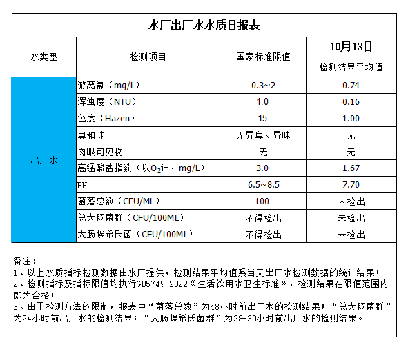 水廠出廠水水質(zhì)日?qǐng)?bào)表(2023-10-13)