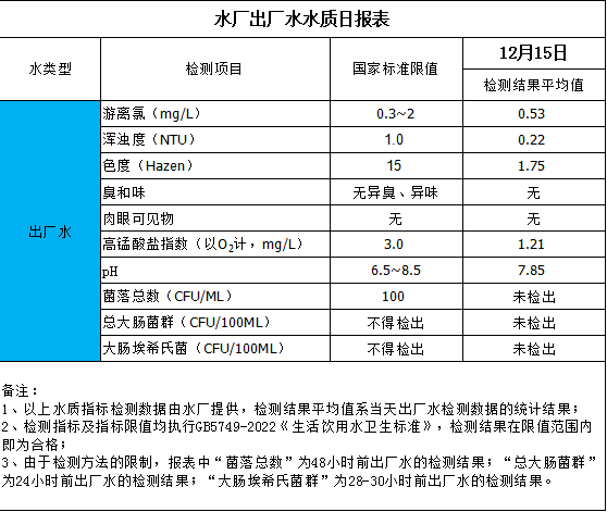 水廠出廠水水質(zhì)日報表(2024-12-15)