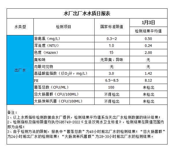 水廠出廠水水質(zhì)日報(bào)表(2025-1-3)